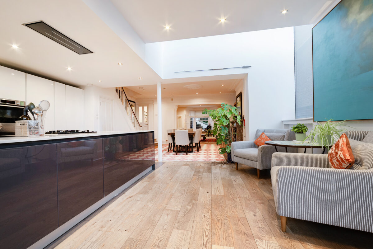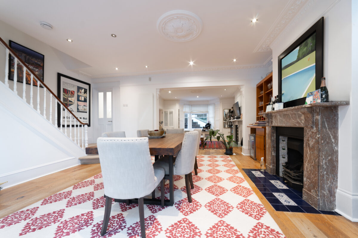A five storey fine period family house abutting Hampstead Heath. The semi detached house covers five floors and was built around 1902. It enjoys many fine features including a number of open working fireplaces, period features including cornice and stunning oak flooring. Fine entertaining from the double volume reception on the raised ground floor with two open working fireplaces and on the garden level with substantial family living room with a stunning open plan bespoke kitchen with retracting doors leading to a private 80ft garden. Upstairs boasts fantastic views over London. 5/6 bedrooms, 4 bathrooms, 3/4 receptions, private terrace. Lots of light and great storage. Close by is South End Green with its easy access to the City, Kentish Town for the excellent Collège Français Bilingue de Londre from Hampstead overground and the excellent bus routes. Belsize Park and Hampstead tubes are a short walk. Available Mid early April.
